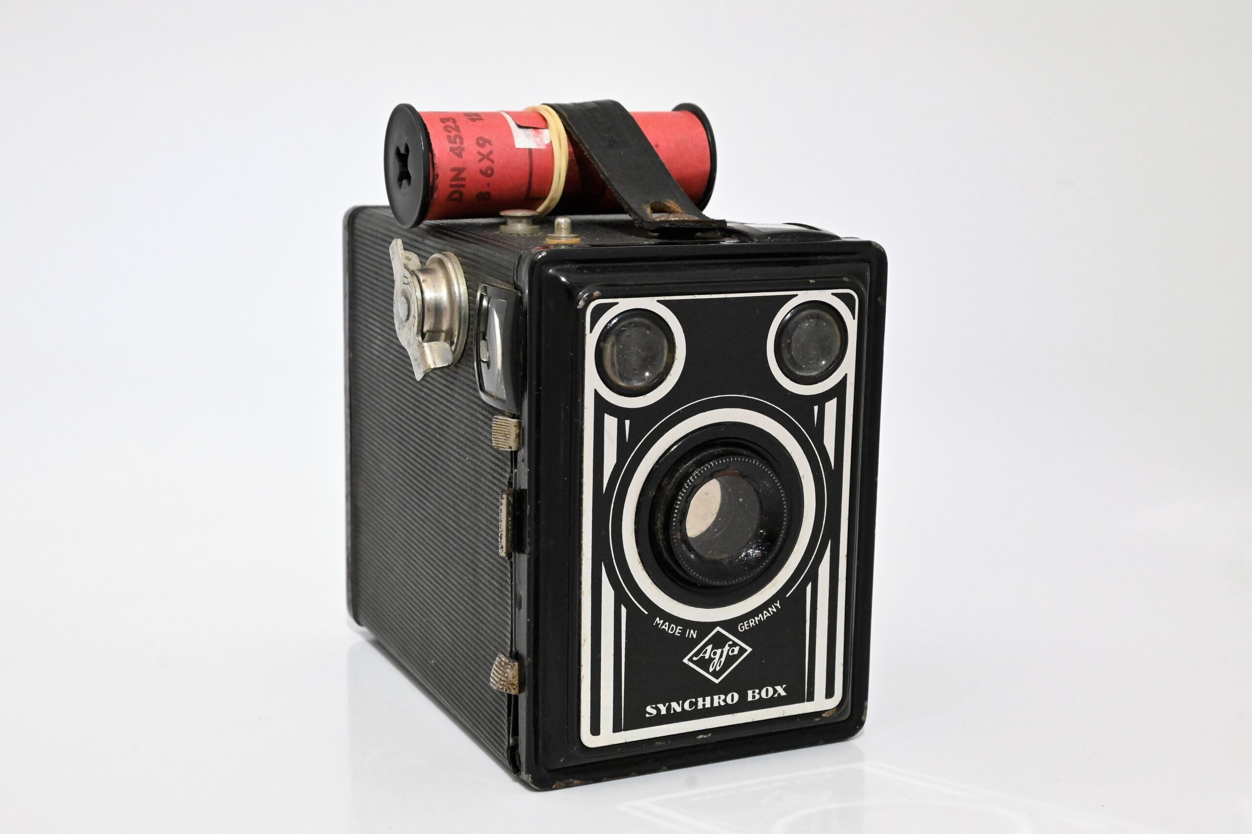 Die Agfa-Box B2 ist eine 6×9-Kamera für den 120er Rollfilm, hergestellt im Jahr 1937. Sie besteht aus Holz, Pappe und Metall und war damals recht verbreitet. In der Kamera befand sich ein alter Agfa-Schwarzweiß-Film, nach dessen Entwicklung noch eine Reihe Aufnahmen gut zu erkennen war. Zu sehen sind zum einen mehrere Personen vor einem verschneiten Alpenpanorama, zum anderen ein Paar und mehrere Personen vor unterschiedlichen Gebäuden. Anhand des Filmmaterials lassen sich die Aufnahmen in die 1950er Jahre datieren.